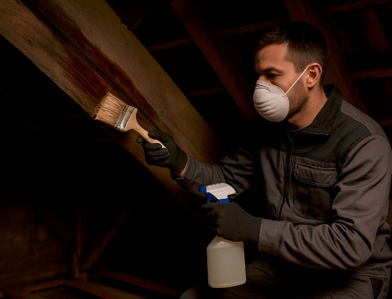En Bretagne, l’humidité favorise le développement de parasites du bois. Nous proposons des traitements professionnels contre :